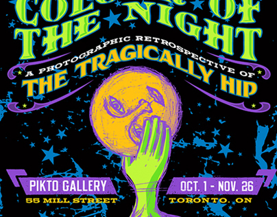 Event poster for Rock n Roll photographer Richard Beland's gallery show: COLOUR OF THE NIGHT - a photographic retrospective of his work for The Tragically Hip. Limited edition screen-prints were created to commemorate the show.