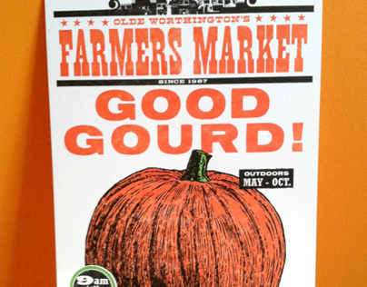 GOOD GOURD! This authentic letterpress print was designed to promote Worthington Ohio's local Farmer's Market. Beautifully printed by Igloo Letterpress on French Paper Company's Madero Beach coverstock. Ltd. Ed. - signed & numbered.