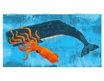 A premium quality archival print featuring an epic battle between a Giant Squid & Sperm Whale. Illustration by Will Ruocco. Available for sale.
