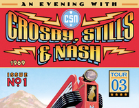 Tour posters and graphic tees used as official tour merchandise for rock band Crosby, Stills, & Nash.