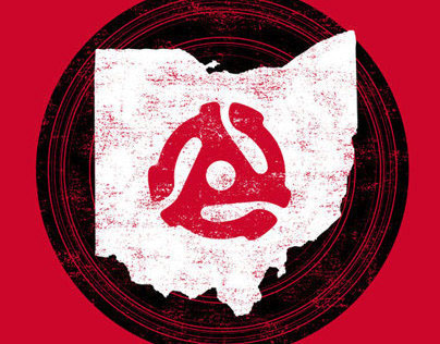 An original full color art print celebrating 45 rpm vinyl records and the state of Ohio by Will Ruocco.