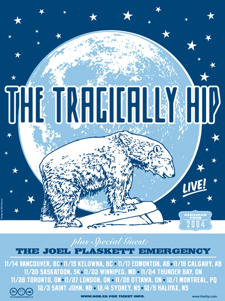 Poster used to promote the Canadian tour of rock band The Tragically Hip.